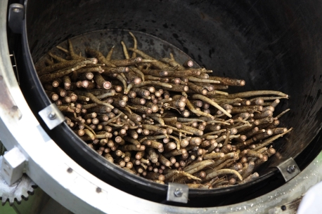 食健では、ゴマをまず姿煮にして乾燥させ、 それから油を搾ります。 一般的に使うのは油の方。でも食健が使うのは実なんです。 【一物全体】の考えからすると、ゴマは丸ごと食べたほうが良く、 実際にそのような商品も製造しています(姿煮黒ゴマ)。 しかし、多くの商品には油を抜いた実を使っています。 現代人の食生活は油分が過多になって、 人間にとってちょうどよい本来の油分のバランスが崩れてしまい、 体に悪影響を及ぼしてしまうのです。 そのため、質の良いエネルギーを豊富に含むゴマの欠点でもある多量の油分を抜いて調節しています。